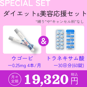 ウゴービ0.25mg 4本とトラネキサム酸30日分がセット。